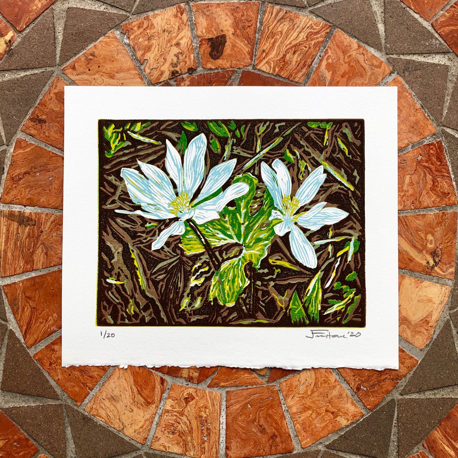 The second in my ongoing spring ephemeral wildflower series, “Bloodroot” is a hand carved 7-layer reduction print.