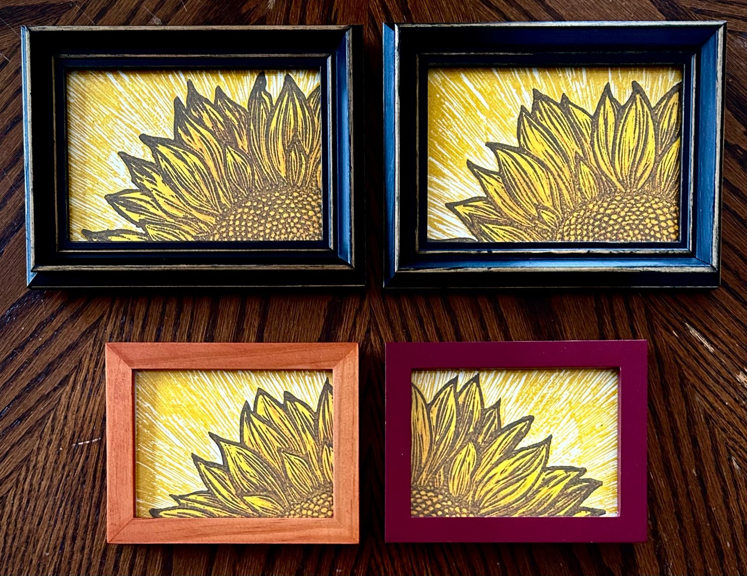 Framed and ready to display, these mini prints are unique 1/1 pieces created from larger prints I have cut down and repurposed for your enjoyment