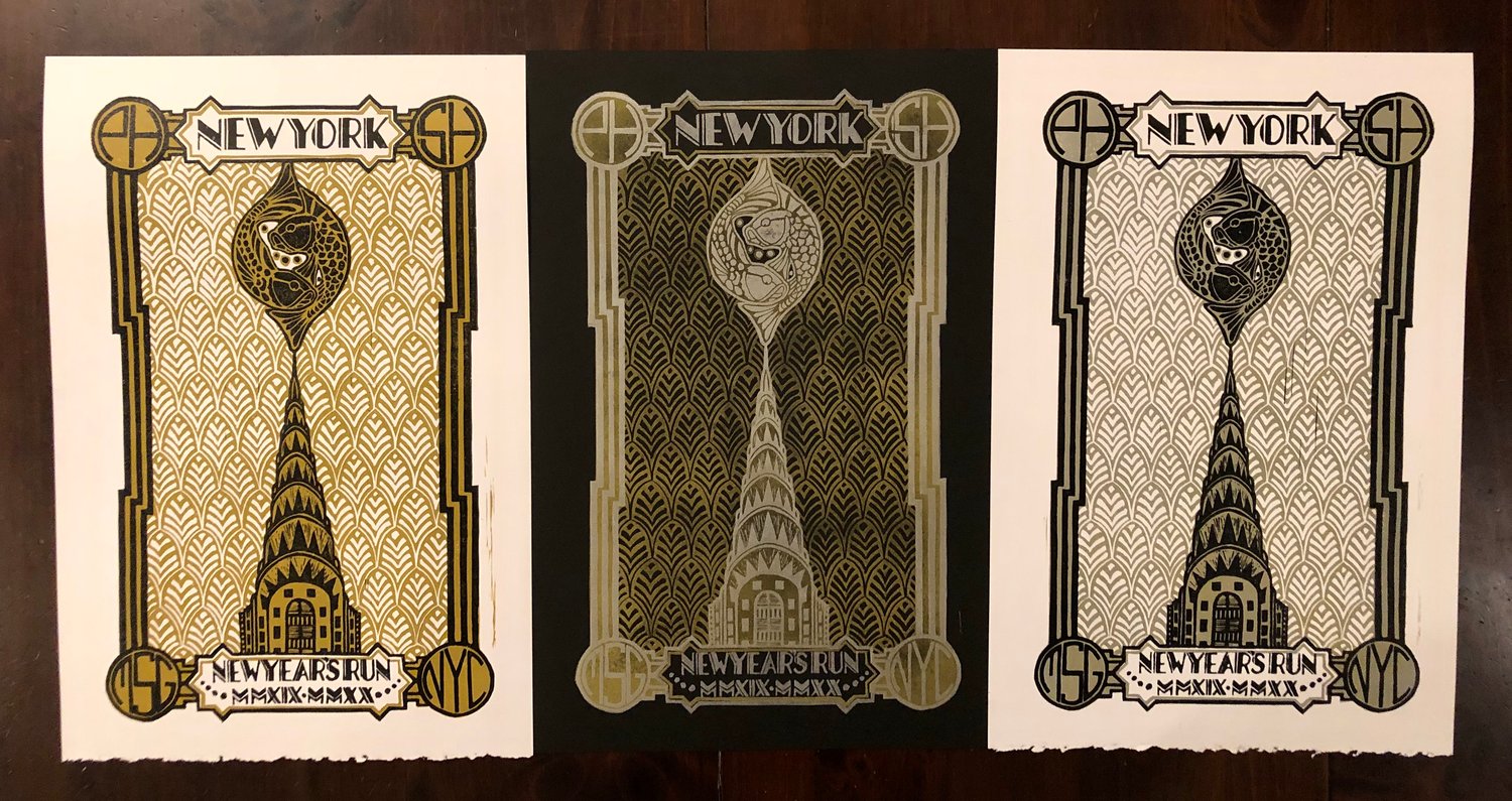 These 2-layer hand carved/hand pressed block prints are inspired by art deco themes of the 1920's. Featuring the iconic Chrysler building printed in oil & water based inks on Stonehendge 100% cotton rag, these measure in at 12" x 18"
