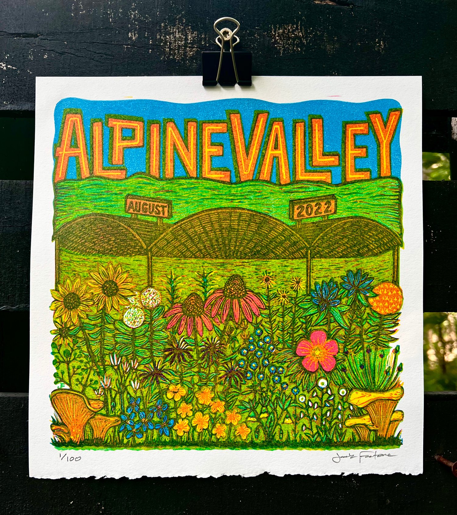 Inspired by and featuring native Wisconsin prairie wildflowers, this 4-layer block print commemorates Phish's 3-night run at Alpine Valley